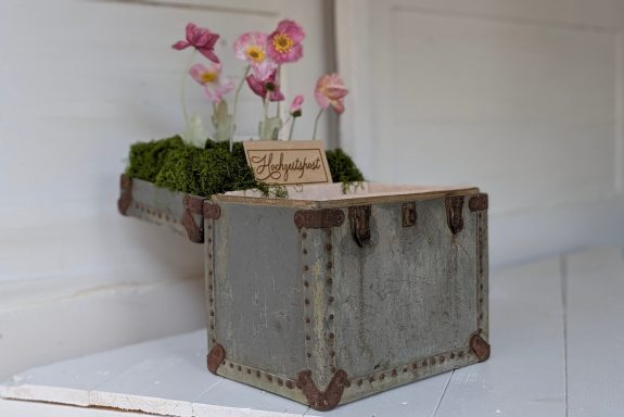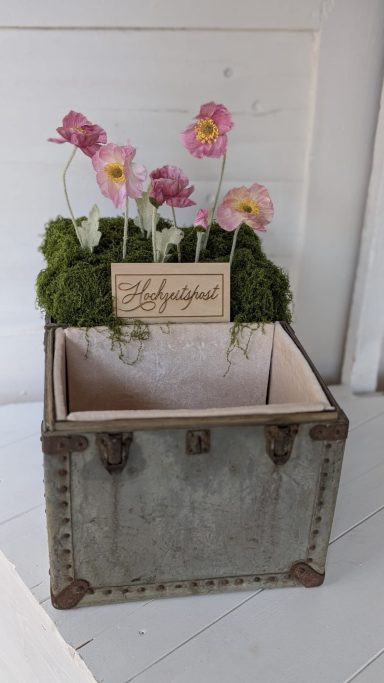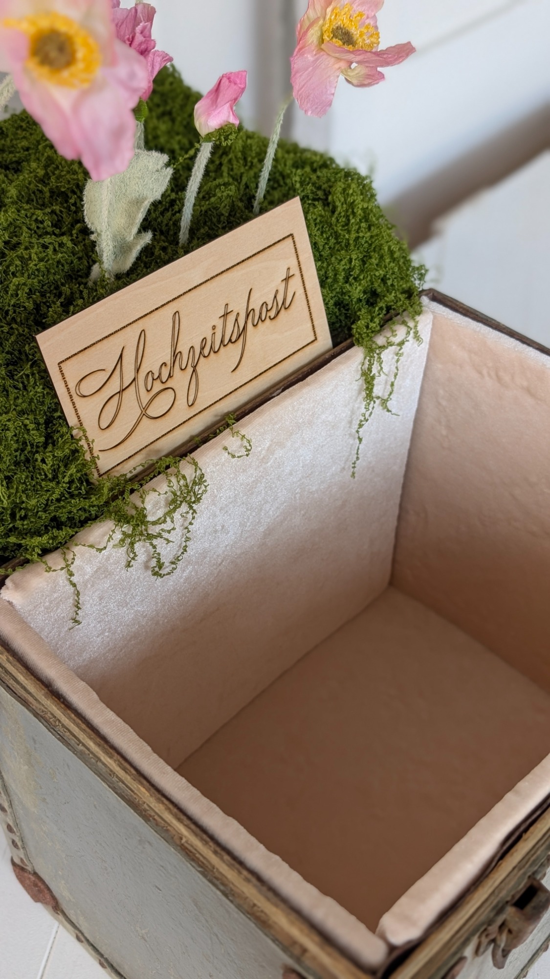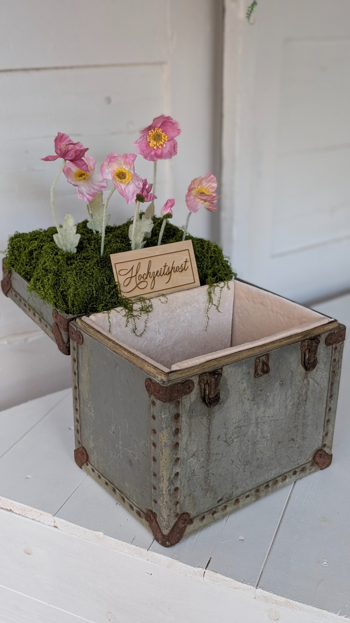 Der alte Koffer wird eure Glückwünsche stilgerecht und würdig entgegennehmen. Verstaut die Geschenke gut und sicher.