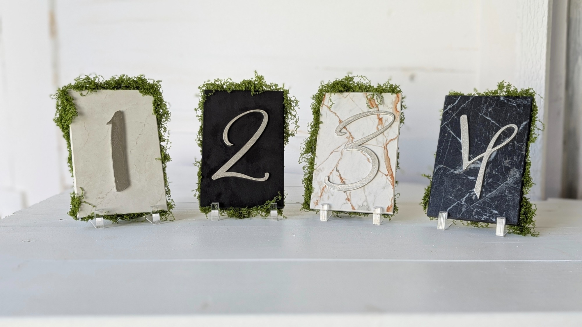 Mit diesen Tischnummern finden eure Gäste ideal den Weg zu ihrem Platz. Es gibt gemischte Farben, nur helle als auch nur dunkle – ganz, wie es in euer Konzept passt!