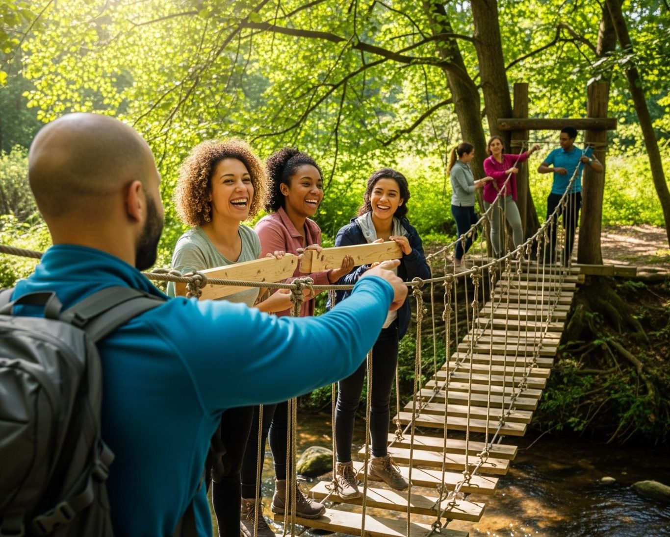 Beim Buschfunk Hängebrückenbau ist jeder gefragt: Sowohl bei der Planung im Team als auch beim späteren Bau – jeder wird benötigt und leistet seinen Teil zum Erfolg. In der Planungsphase erstellt das Team einen Bauplan anhand der zur Verfügung gestellten Materialien. Nach der Baufreigabe geht es an die Umsetzung. Wird die Brücke wirklich halten? Mit Sicherheit! Nach der Bauphase wird bei der Taufe stolz dem Bauwerk die Ehre erwiesen, anschließend von allen begangen. Und keine Sorge: dazwischen gibt es noch viele kleine weitere Aufgaben und Erlebnisse, die dafür sorgen, dass ihr als Team eine tolle und erfolgreiche gemeinsame Erfahrung habt, von der ihr in den nächsten Monaten noch etwas habt!